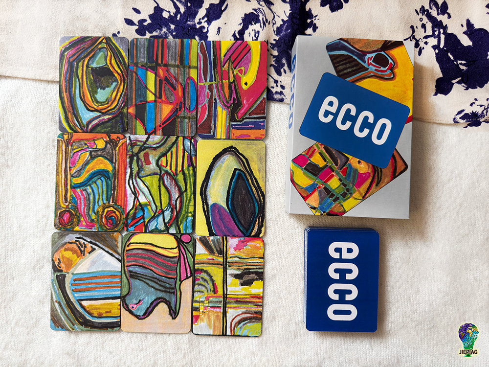 «Ecco» не містить зображень людей, предметів чи конкретних сцен. Є лише абстрактні композиції — кольорові плями, лінії, контрасти, світло і тінь. Саме відсутність конкретики робить колоду надзвичайно потужною для проєктивної роботи. Людина не відволікається на сюжет, а реагує безпосередньо на відчуття. Це колода про стан, а не про подію. Вона обходить раціональне мислення і дає доступ до чистого переживання.