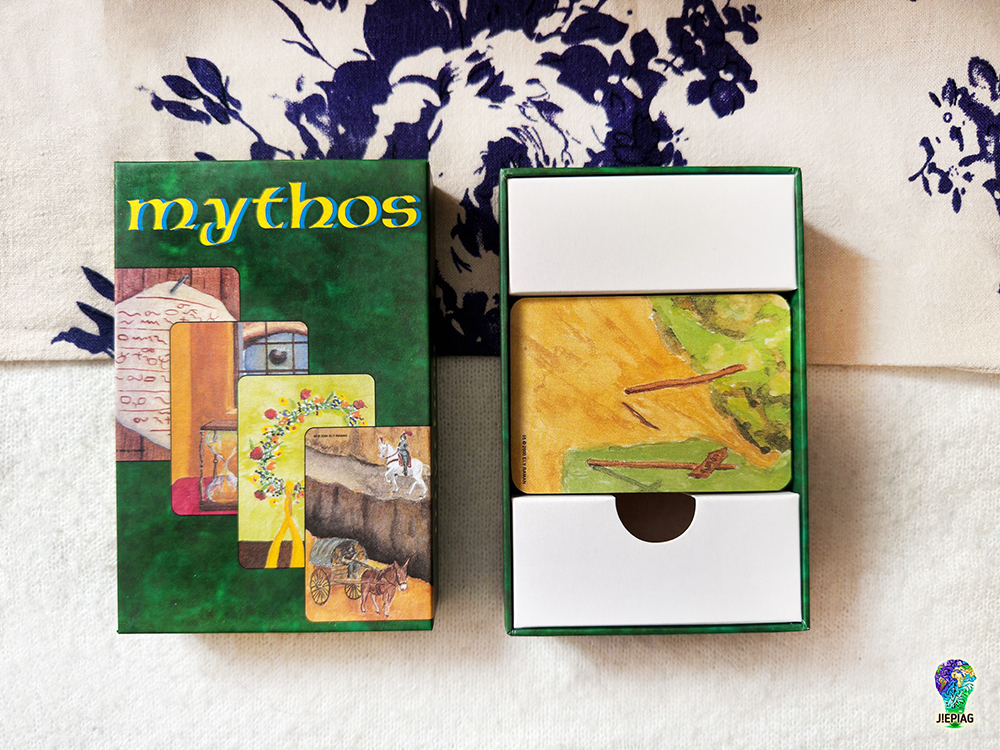 «Mythos» зображують сцени, символи та предмети зі світу міфів, казок і легенд, адже міф — це вигадана історія, що містить глибоку психологічну правду. У різних культурах світу люди створювали міфи, щоб передати колективний досвід: страхи, ініціації, втрати, перемоги, архетипові сценарії життя. Через міф людина говорить про себе без прямого саморозкриття — безпечніше, глибше і щиріше. Кожна карта «МІФІВ» — це символічний портал у світ архетипів, несвідомого та внутрішніх сюжетів.